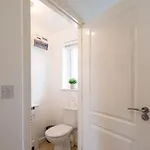 Die Villa Cozy Glam Patchway Garden House Sleep 9 Mid-Long Term Welcome verfügt über ein Badezimmer mit einer getrennten Toilette, einer Dusche und einer Waschmaschine. Es gibt einen Haartrockner und Badelaken für den Komfort der Gäste.